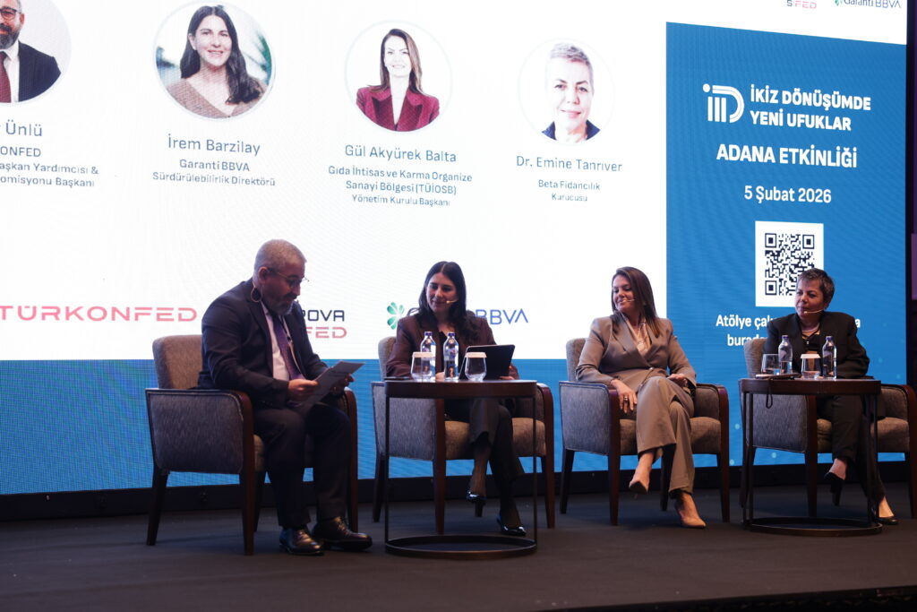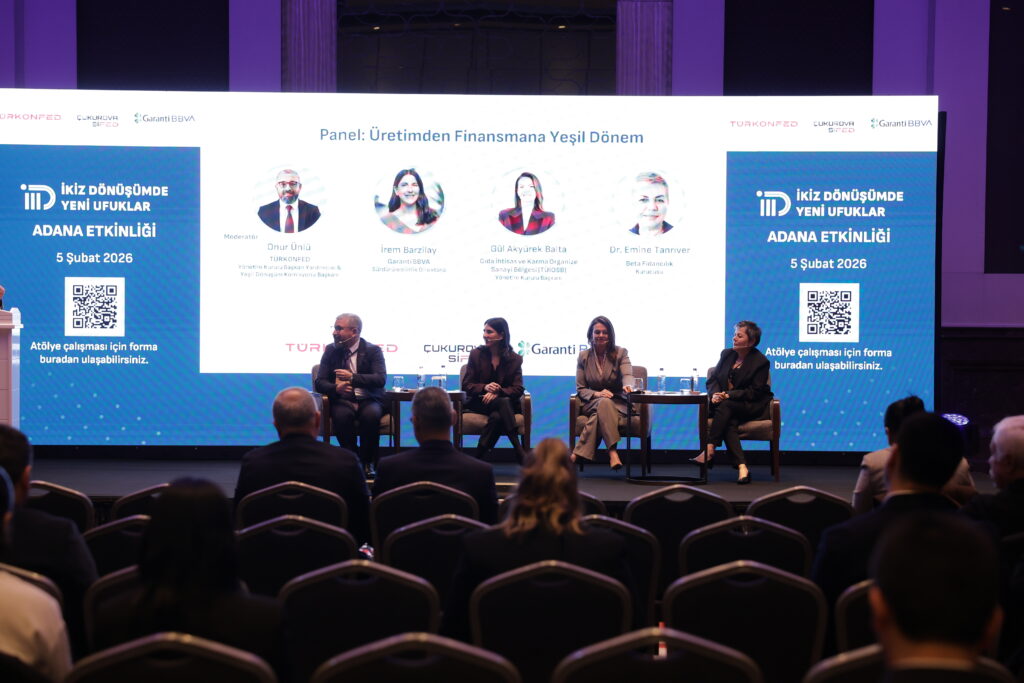 TÜRKONFED ve Garanti BBVA iş birliğinde yürütülen İkiz Dönüşümde Yeni Ufuklar Projesi etkinliği ÇUKUROVASİFED ev sahipliğinde gerçekleştirildi. Etkinliğe konuşmacı olarak OSBÜK Yönetim Kurulu Üyesi ve TÜİOSB Yönetim Kurulu Başkanı Gül Akyürek Balta’da katılım gösterdi. Toplantı, KOBİ’lerin sürdürülebilir iş modelleri, döngüsel ekonomi ve yeşil finansman süreçlerine katkı sağlamak amacıyla yapıldı.